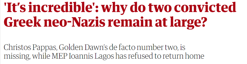 RT @glykosymoritis: ‘It’s incredible’: why do two convicted Greek neo-Nazis remain at large? – Christos Pappas, #GoldenDawn’s de facto numb…